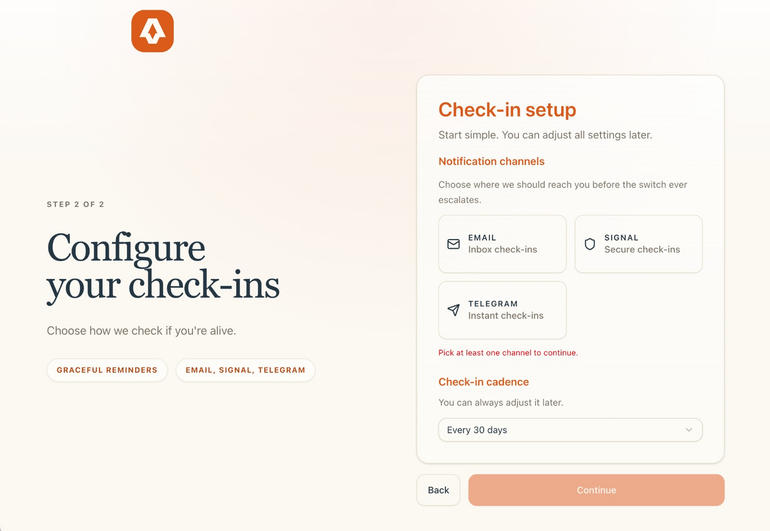 ✨ Total Control: You decide the check-in frequency, the grace period, and the precise content that makes up your digital legacy.