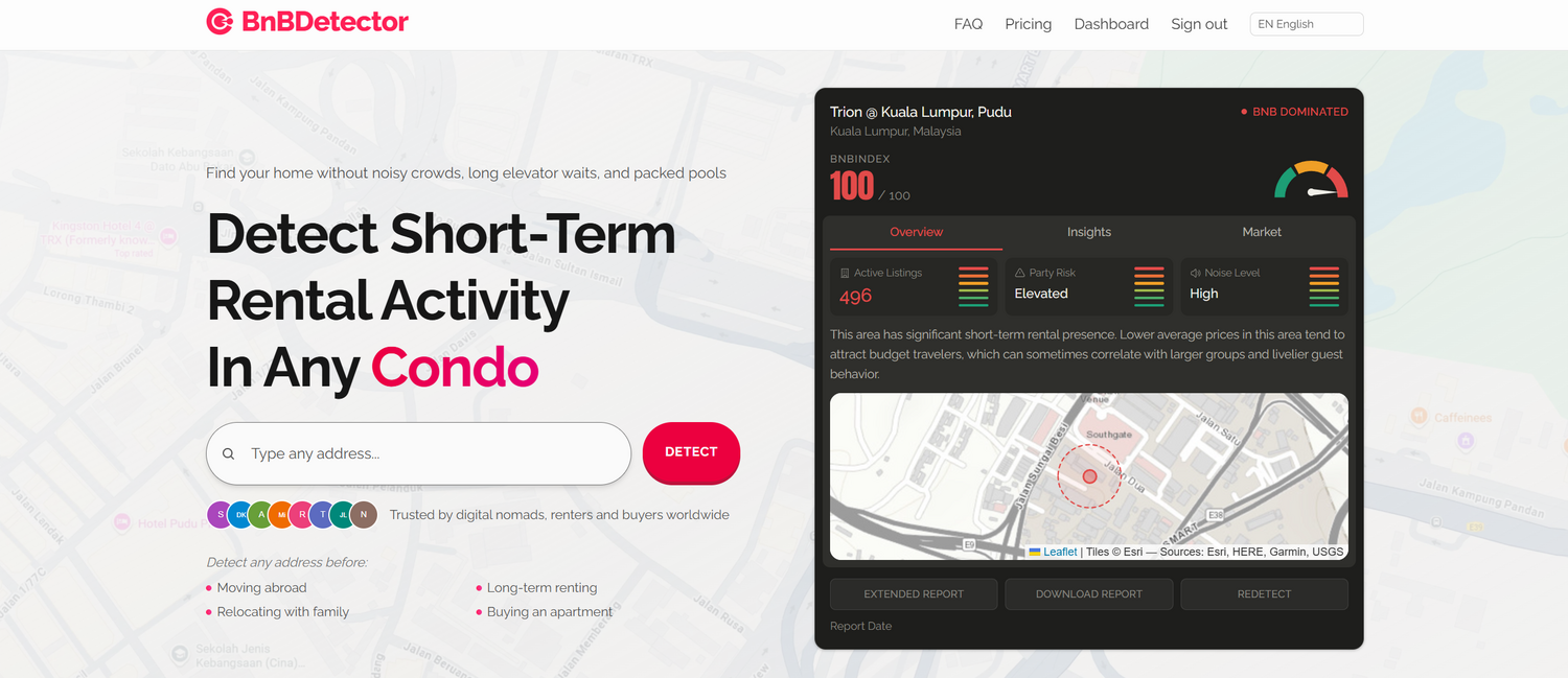 BnBDetector is built for anyone relocating, renting, or investing globally who wants to avoid high-turnover buildings and find truly quiet, stable homes without trial and error.