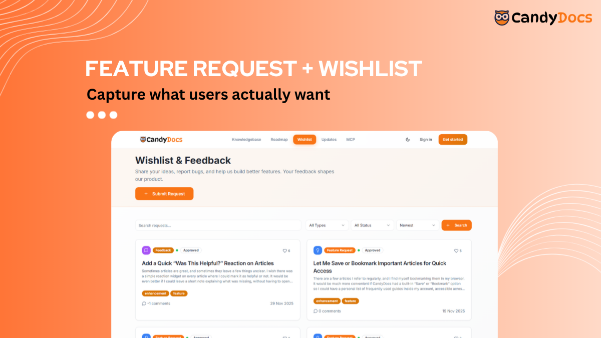 CandyDocs is built for the modern product-led growth strategy, where documentation is a key touchpoint in the user journey. It moves beyond basic help centers to create a living resource that educates users, gathers insights, and builds trust. The platform is trusted by over 130 forward-thinking product teams who leverage its capabilities to reduce support tickets, improve user, and strengthen their product's narrative.