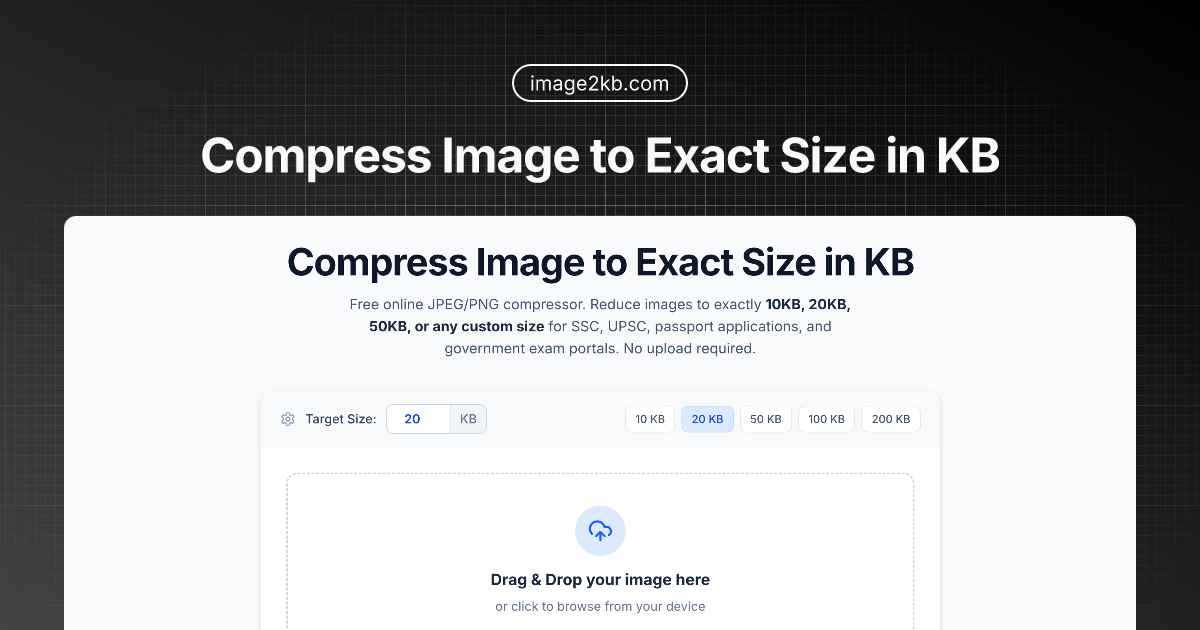 Image2KB is a specialized tool designed to solve a very specific digital problem: compressing JPEG and PNG images to an exact, predetermined file size. In a world where forms, government portals, and application systems enforce strict size limits—often as precise as 10KB, 20KB, or 50KB—guessing the right compression settings is frustrating and time-consuming. Image2KB eliminates this guesswork entirely, offering a streamlined solution that delivers your image at the precise kilobyte size you require, perfect for SSC, UPSC, passport applications, and various other official submissions.