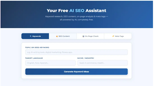 Kholaseo is a free AI SEO assistant built to simplify keyword research, generate SEO-friendly content, and audit on-page elements. Designed for marketers and site owners, it delivers fast, actionable insights to improve rankings and meta tag optimization.Key features include:
