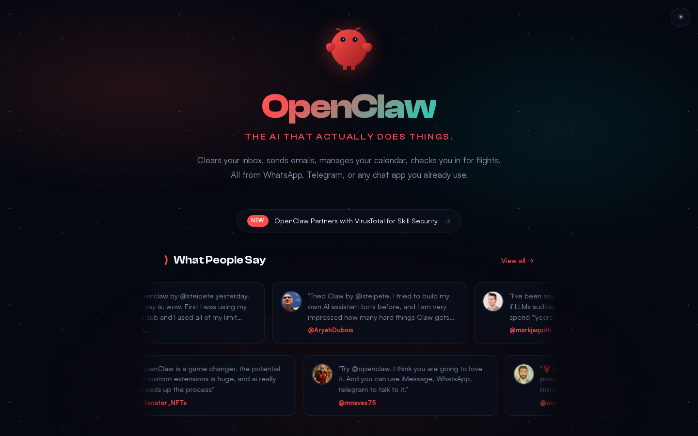 OpenClaw distinguishes itself by executing real-world tasks with precision and reliability. It doesn't just offer suggestions—it completes the work for you. The AI handles a wide array of administrative and logistical duties, freeing your time and mental energy for what truly matters. Furthermore, OpenClaw partners with leading security platforms like VirusTotal to rigorously vet its capabilities, ensuring every action it performs is safe and trustworthy. This commitment to security is foundational, providing peace of mind alongside powerful automation.