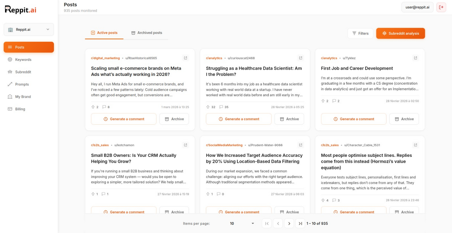 Stop searching for customers and start being found where they are already asking for you. Begin your journey with Reppit AI today.