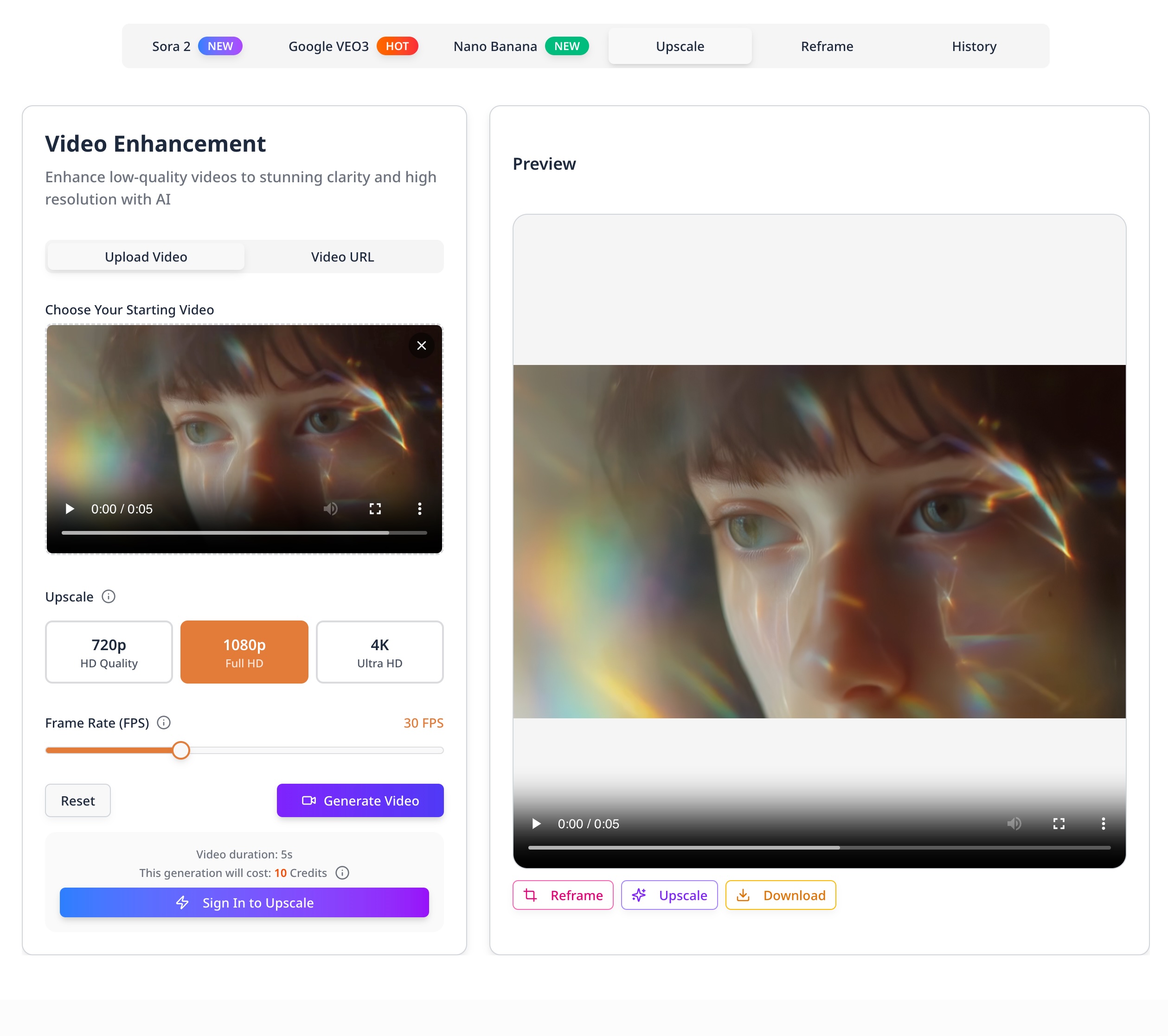 🔄 **Advanced Editing:** Utilize powerful built-in tools to upscale resolution, reframe shots, and extend video length, giving you full creative control in post-production.