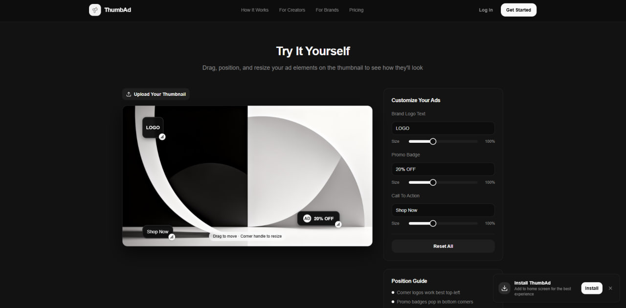ThumbAd is the first marketplace to bring an unique solution that will boost monetization for every YouTube creator without interfering with the platform. Start earning today with ThumbAd!