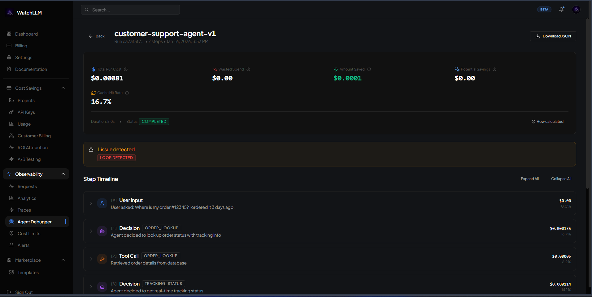 - Agent debugger with Loop detection