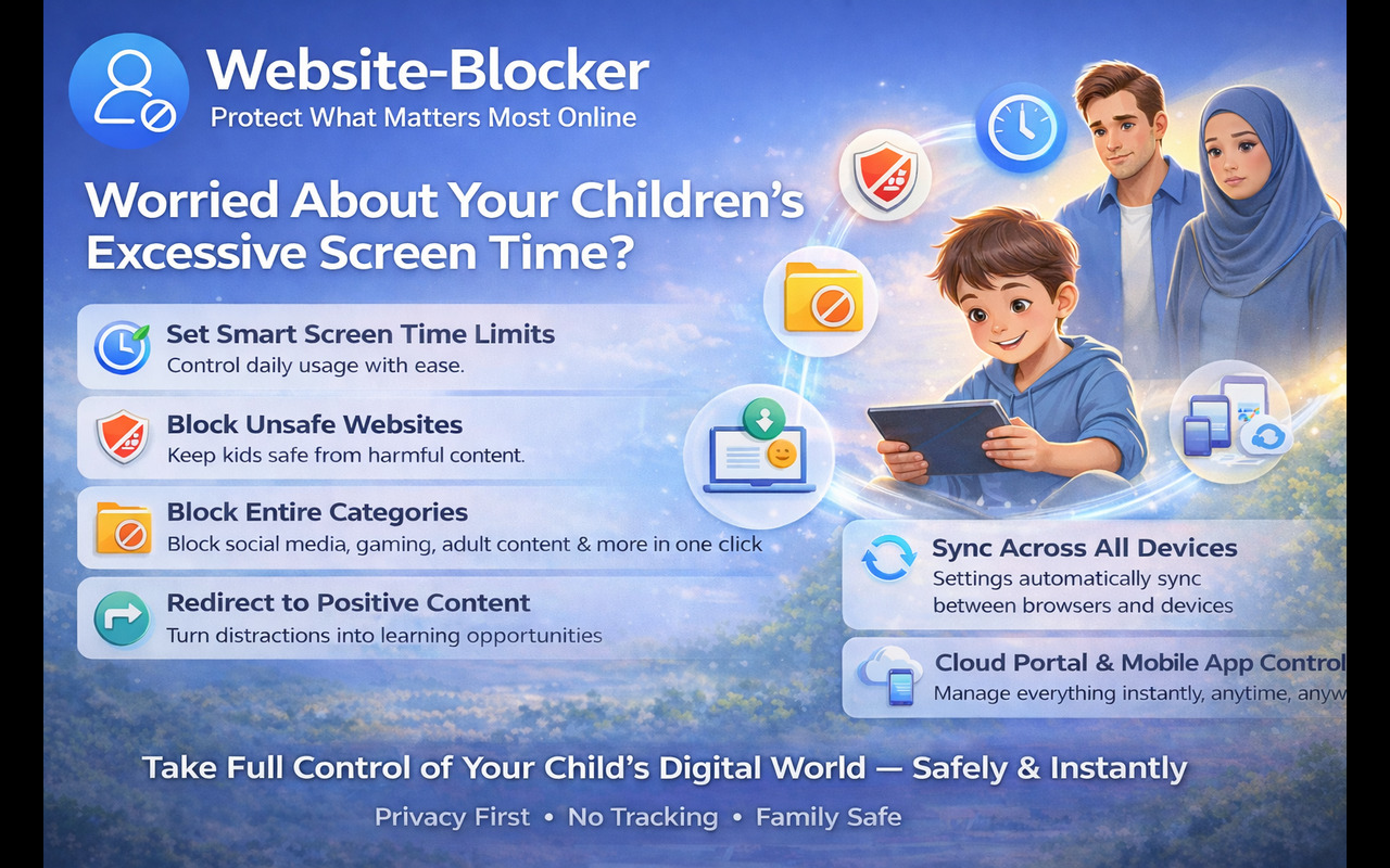 In today’s digital age, protecting your children from harmful online content is more critical than ever. Website-Blocker is a powerful Chrome-based extension designed to create a safe and secure browsing environment for your family. With its intuitive interface and robust filtering capabilities, this tool ensures that inappropriate or dangerous websites are automatically blocked, giving parents peace of mind.