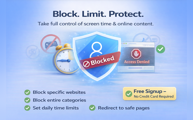 📵 Time Management: Set schedules to block specific sites during homework or bedtime, promoting better screen-time habits.